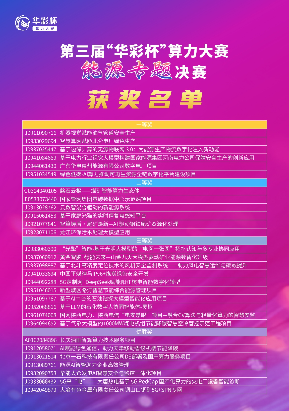 第三届“华彩杯”算力大赛能源专题决赛获奖名单