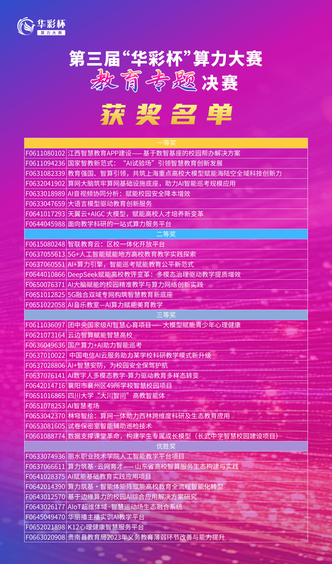 第三届“华彩杯”算力大赛教育专题决赛获奖名单